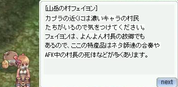 どうやら最近、村長がリアル引越しと花粉症をこじらせてブログをやむなく、さぼって楽しくROを満喫して、書けていなかったころ、このAAを使うことによって、フェイヨン村復興支援会の一人であるヤト夫がブログで頑張っている模様。